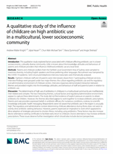 This paper on a qualitative study that I’m very proud of, where we interviewed early childhood educators and parents/carers, including in local community language, on their perspectives of antibiotic use in the Fairfield Local Government Area.